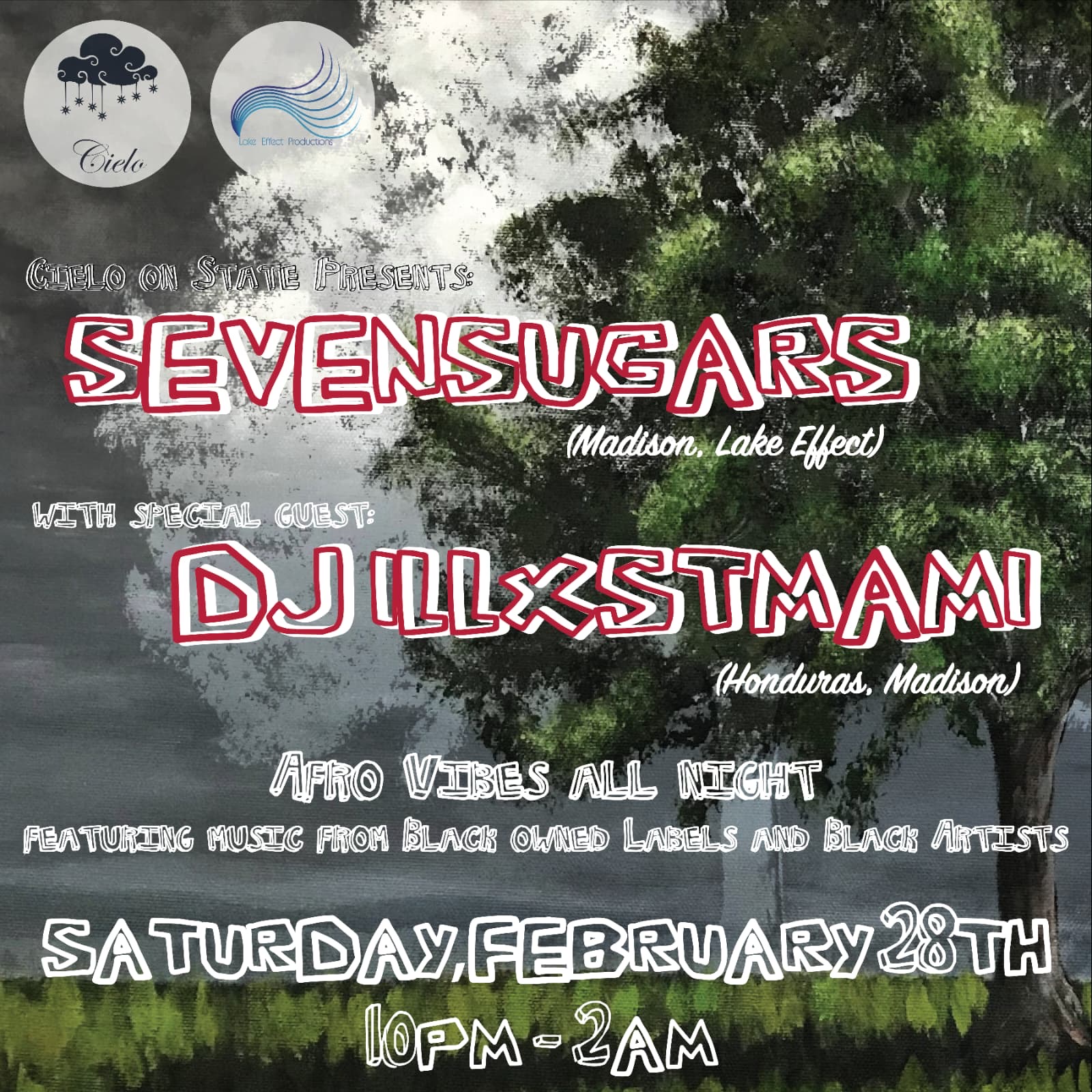 Sevensugars 360 Dj illxstmami Feb 28 February 28, 2026 10:00 PM until March 01, 2026 02:00 AM https://www.instagram.com/p/DUrFQolkehs/